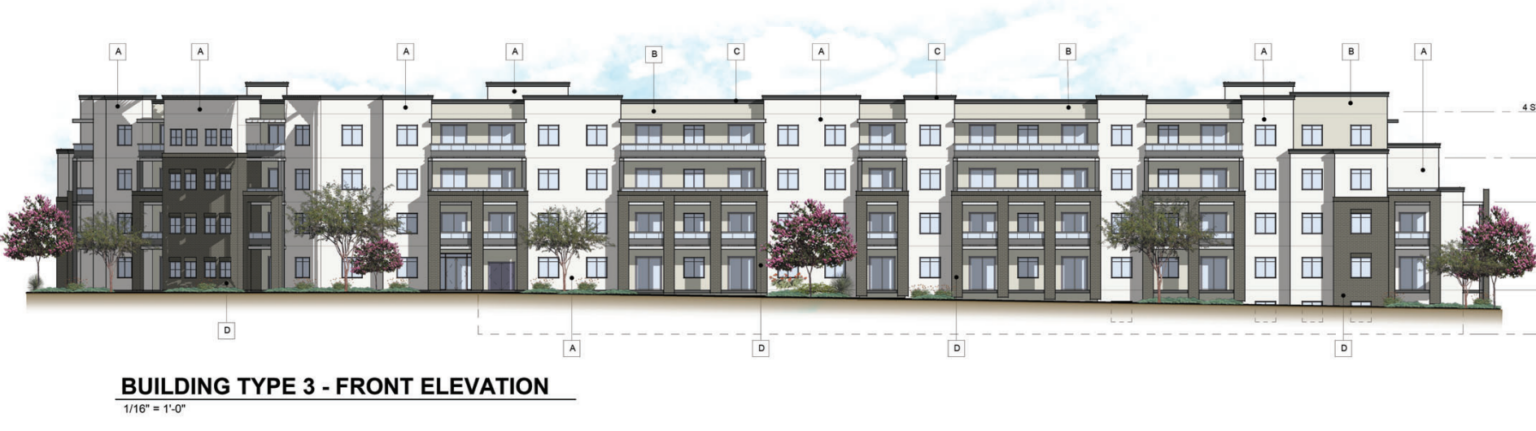 On the northern side of the site, SAM has planned two-story, 30-foot townhomes to allow a natural transition to the single-family properties to the north. A 65-foot, five-story building is planned on the southwest side of the property. The three remaining buildings will be four stories with maximum heights of 55 feet.