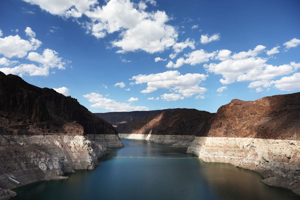 A ‘bathtub ring’ of mineral deposits left by higher water levels is visible at the drought-stricken Lake Mead on June 24, 2022. The U.S. Bureau of Reclamation reported that Lake Mead, North America’s largest artificial reservoir, has dropped to about 1,044 feet above sea level, the lowest it’s been since being filled in 1937 after the construction of the Hoover Dam. The declining water levels are a result of a climate change-fueled megadrought coupled with increased water demands in the Southwestern United States. Fears are increasing that Lake Mead could in years ahead become a “dead pool.” when the water levels become too low to flow downstream from nearby Hoover Dam. Photo by Mario Tama | Getty ImagesA ‘bathtub ring’ of mineral deposits left by higher water levels is visible at the drought-stricken Lake Mead on June 24, 2022. The U.S. Bureau of Reclamation reported that Lake Mead, North America’s largest artificial reservoir, has dropped to about 1,044 feet above sea level, the lowest it’s been since being filled in 1937 after the construction of the Hoover Dam. The declining water levels are a result of a climate change-fueled megadrought coupled with increased water demands in the Southwestern United States. Fears are increasing that Lake Mead could in years ahead become a “dead pool.” when the water levels become too low to flow downstream from nearby Hoover Dam. || Photo by Mario Tama | Getty Images