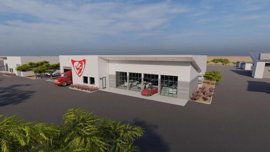 An artistic rendering shows plans for a new Flying Lizard Motorsports headquarters at Apex Motor Club in Maricopa.