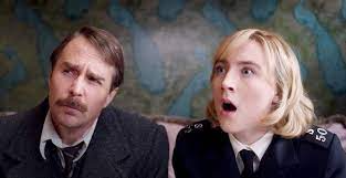 Saiorse Ronan, born in the Bronx, NY but growing up in Ireland, is the most prominent young actress as evidenced by already having 4 Oscar nominations under the age of 30. Record holder Meryl Streep only had one nomination by the age of 30. She brilliantly plays the over-enthusiastic constable who may lack experience with investigating major crimes but makes up for with steadfast dedication and energy. This role showcases her comedic prowess as her character is hilariously quick to pass judgment, immediately pointing her finger at anyone to which the clues and motives seem to align.