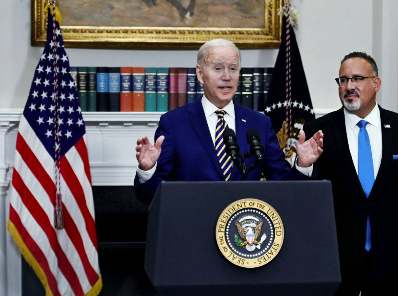 President Joe Biden and Education Secretary Miguel Cardona: Photo by Olivier Douliery/AFP via || Getty Images