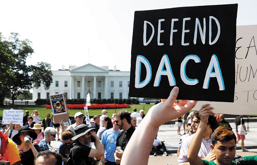 Deferred Action for Childhood Arrivals (DACA) supporters demonstrate near the White House in Washington Sept. 5. Attorney General Jeff Sessions announced Sept. 5 that the DACA program is “being rescinded” by President Donald Trump