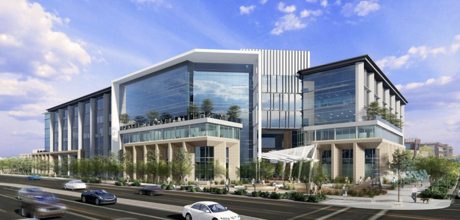 An artist’s rendering shows SkySong 6, the sixth office building planned in the ASU Scottsdale Innovation Center. PROVIDED BY PLAZA COMPANIES