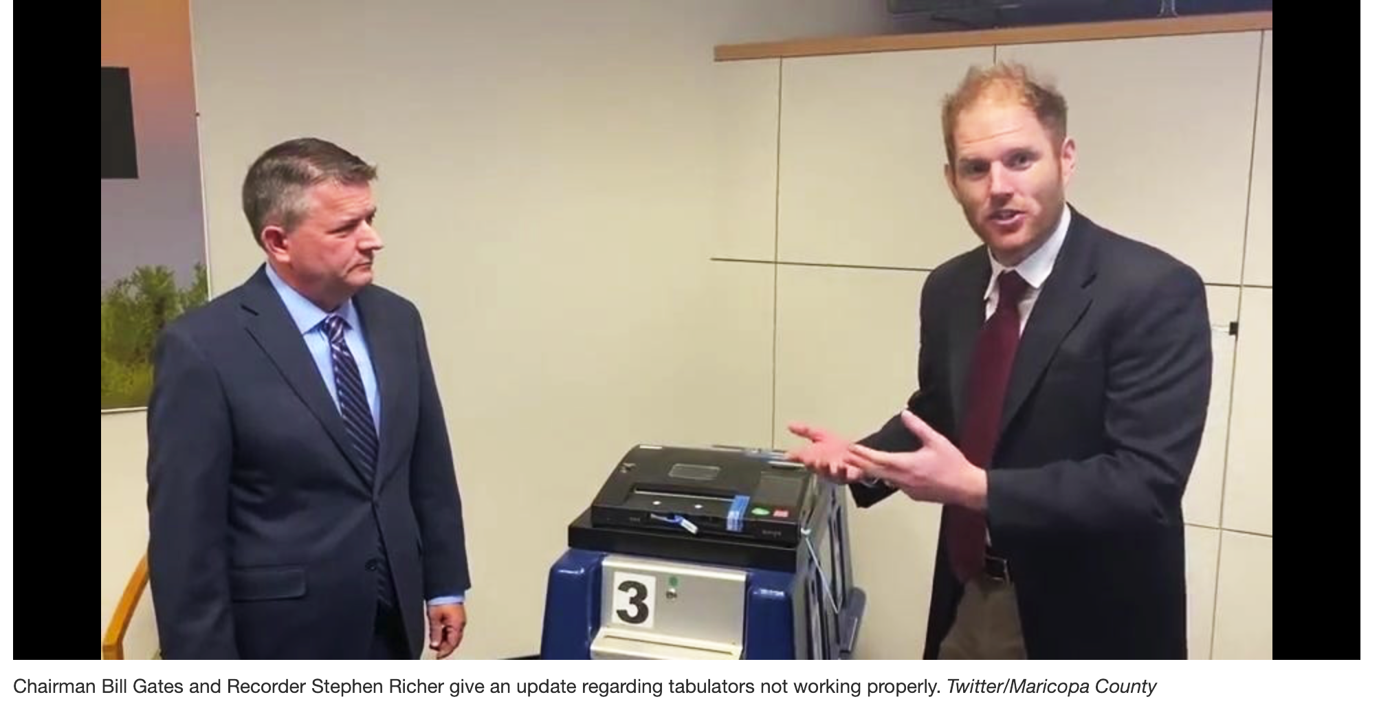 Chairman Bill Gates and Recorder Stephen Richer give an update regarding tabulators not working properly.