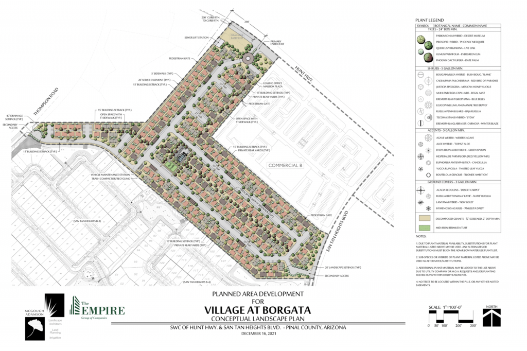 Scottsdale-based developer, Empire Group recently closed on a 27-acre parcel in San Tan for approximately $13.8 million. Plans for the land are now underway for a build-for-rent community called Village at Borgata. Village at Borgata will be situated at the Southwest corner of Hunt Highway and Thompson Road near the foothills of the San Tan mountains.