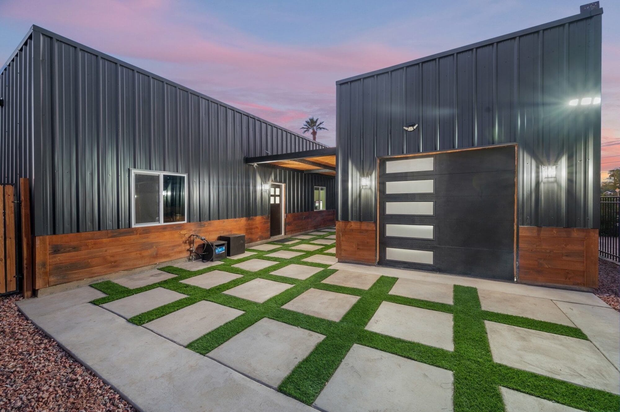 The Downings paired the lightly torched lumber with a cherry stain, black metal siding and a pearl metallic apoxy for the flooring. Mike says originally the house was going to be a stucco home, but suggested the design because it would be a cleaner, sleeker, modern look, “…and cheaper too.”