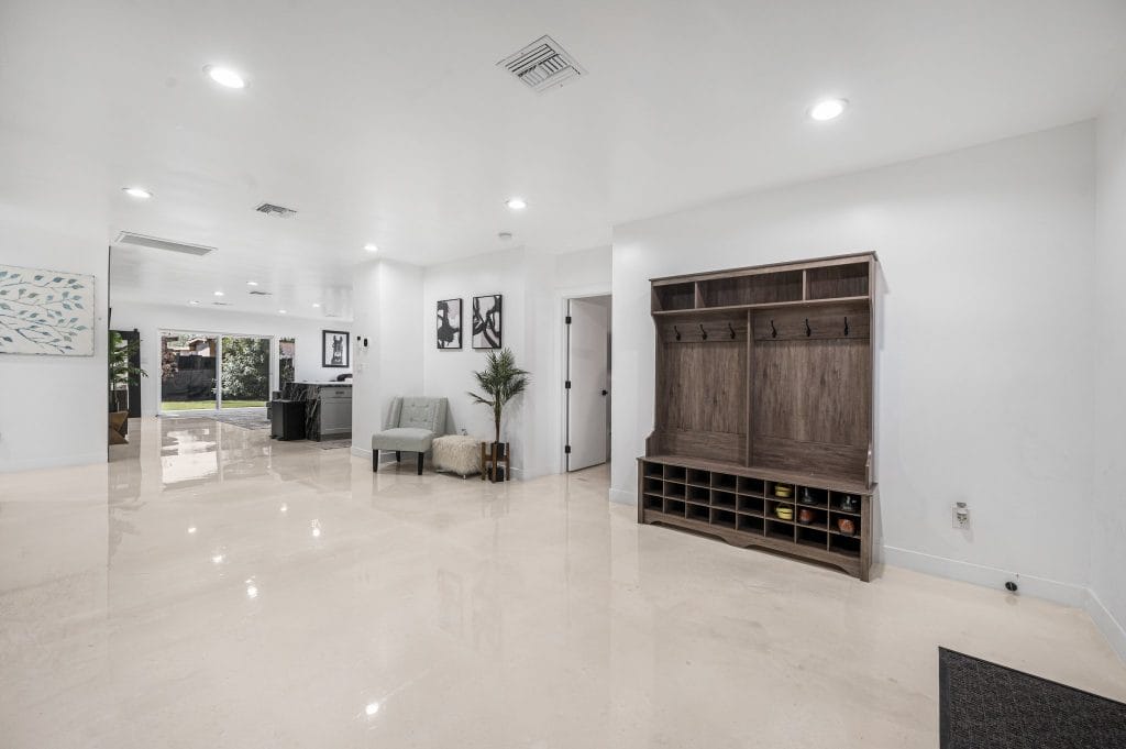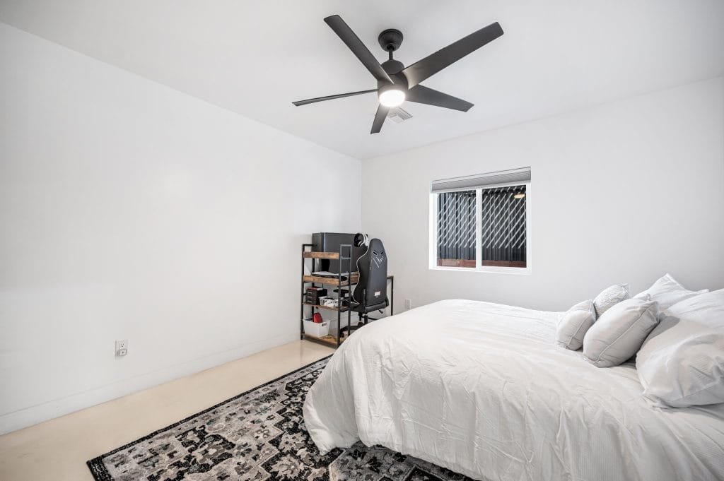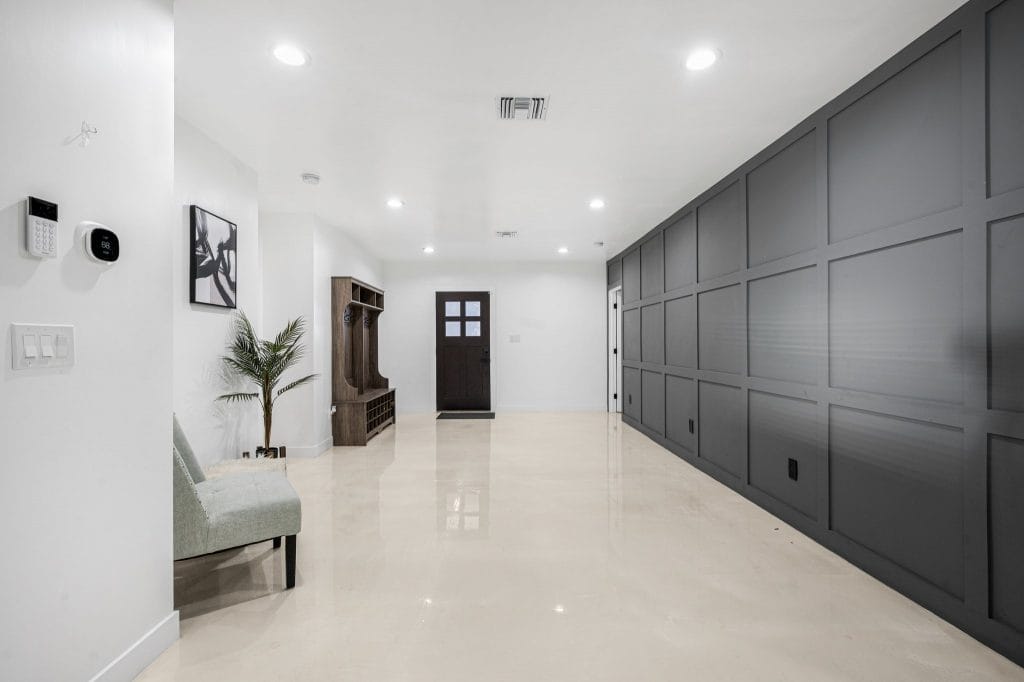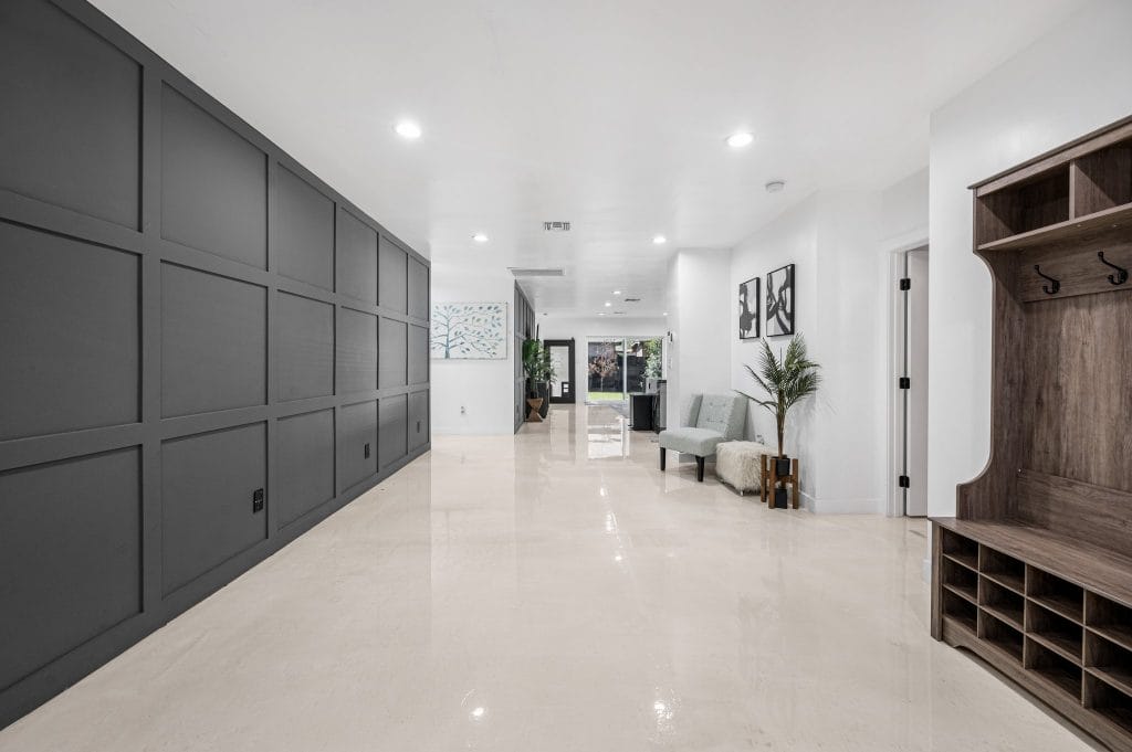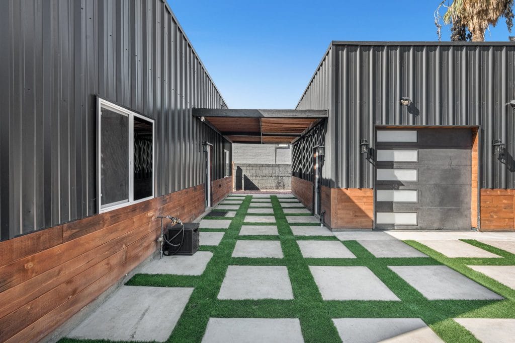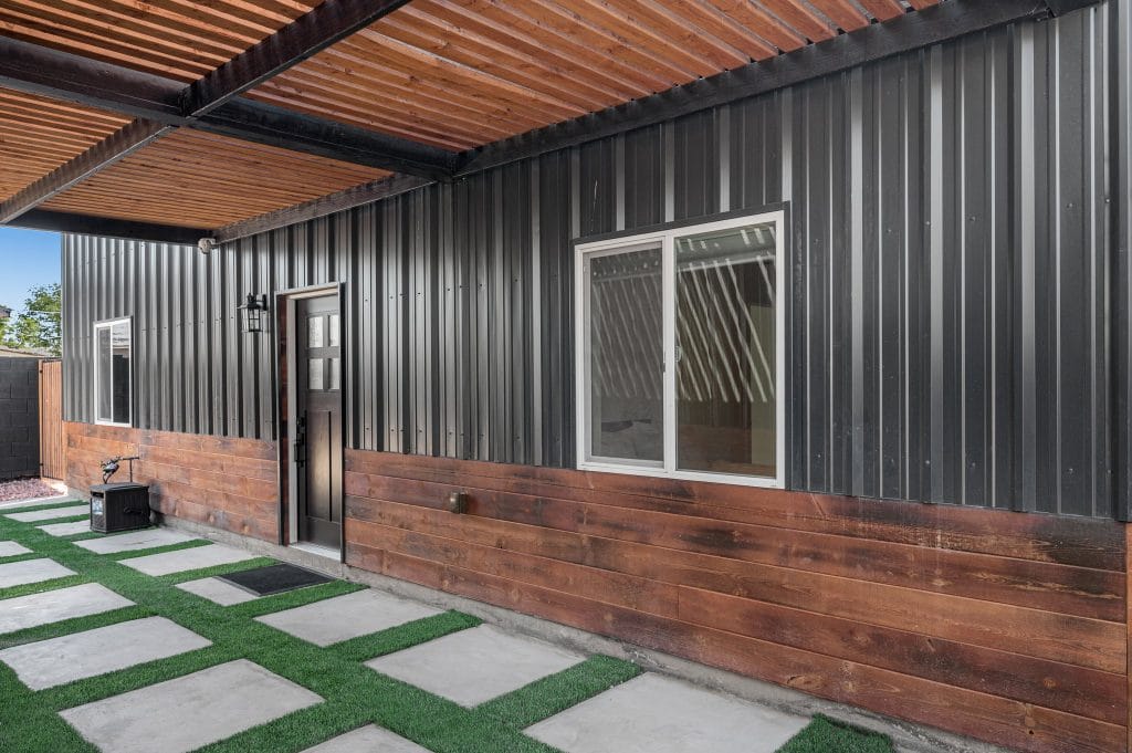 Their latest property, on 2113 E. Harvard Street is an 1850 sq. ft., 3 bed 2 bath featuring an ancient Japanese exterior siding technique that preserves wood by charring it with fire. Using the Shou Sugi Ban method was Mike’s idea, after seeing it in a family furniture shop and watching tutorials on Youtube. Usually it’s done with large machinery, but the cousins took the DIY route, burning the lumber by hand with a detached torch and propane tank.