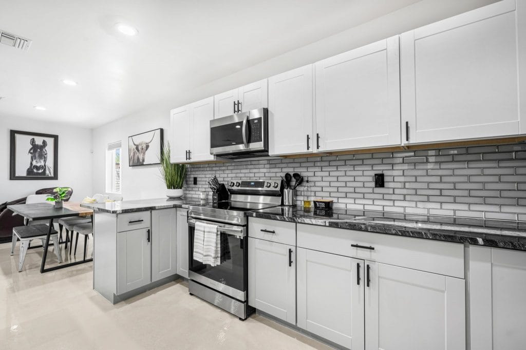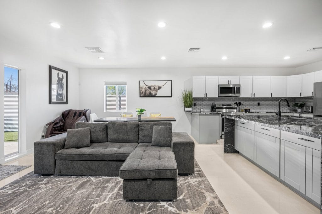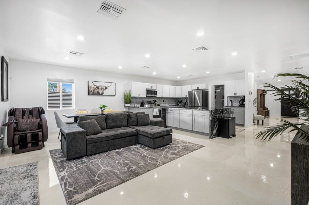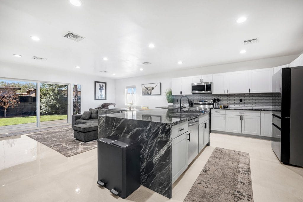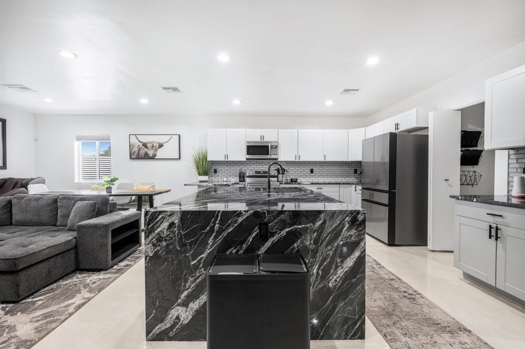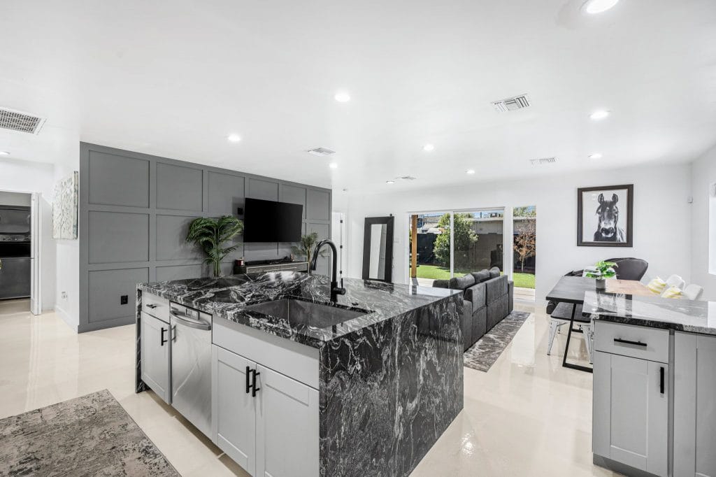 It’s a mentality that he says has paid off in real estate industry, proving to have the resilience required for the ups and downs of the housing market. He now partners with his cousin Mike Downing who brings 25 years of Valley remodeling, residential and commercial construction experience as well. The duo formed Downing Creative Concepts and have acquired and flipped hundreds of properties between the two cities. Lately, they’ve been expanding into luxury customs and tailored designs in the Phoenix metro.