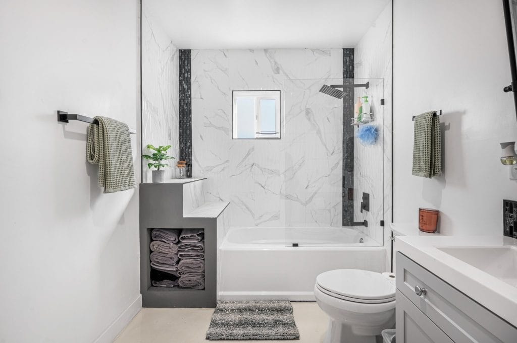Mike says when it comes to renovating, you can’t be afraid to try new things or use something borrowed. “Doesn’t matter the material, we always try to do repurpose a lot. We’re not wasteful. I like to experiment with glass and metal and rocks and wood… I like to try to throw these different elements into something you don’t commonly see just to see the result. Worst case scenario you can go back and change it but I love seeing new designs and methods.”