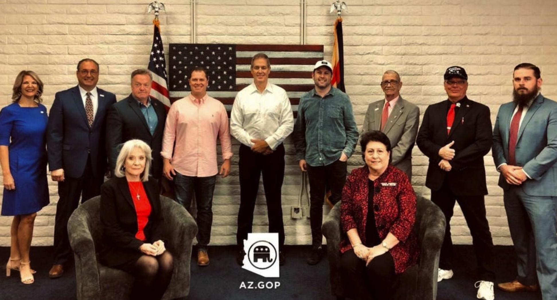 Ward (standing left) herself was part of a group of Republicans who created a slate of alternate electors in 2020, and is under investigation by the Congressional committee investigating the insurrection at the U.S. Capitol on Jan. 6, 2021.|| Arizona Republican Party