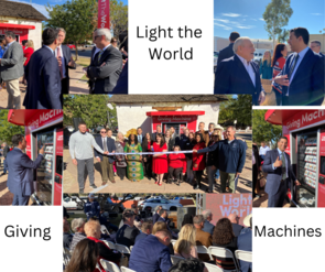 I was fortunate to attend the Ribbon Cutting for the Light the World Giving Machines placed at the Town of Gilbert Water Tower the week before Thanksgiving. It was a beautiful and moving ceremony. The machines are paid for by the Church of Jesus Christ of Latter-Day Saints and 100% of the proceeds go to local charities who then deliver your selected gift to an individual or a family in need. The gift may be meals for a family, a soccer ball, a pair of tennis shoes, or a scholarship that will allow a child in Africa to get an education. It is your choice.I was thrilled to make my choice knowing that I had done something to share the light of goodness and love in my community. What a great way to bring us together as a community and as people, as brothers and sisters on this planet earth. For Giving Machine Locations Near You