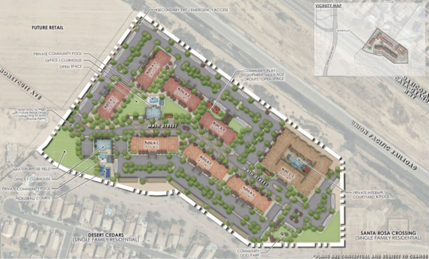 The 574-unit Apartments at Honeycutt project was approved by Planning & Zoning Monday. It will be the largest multi-family community in the city. [City of Maricopa]