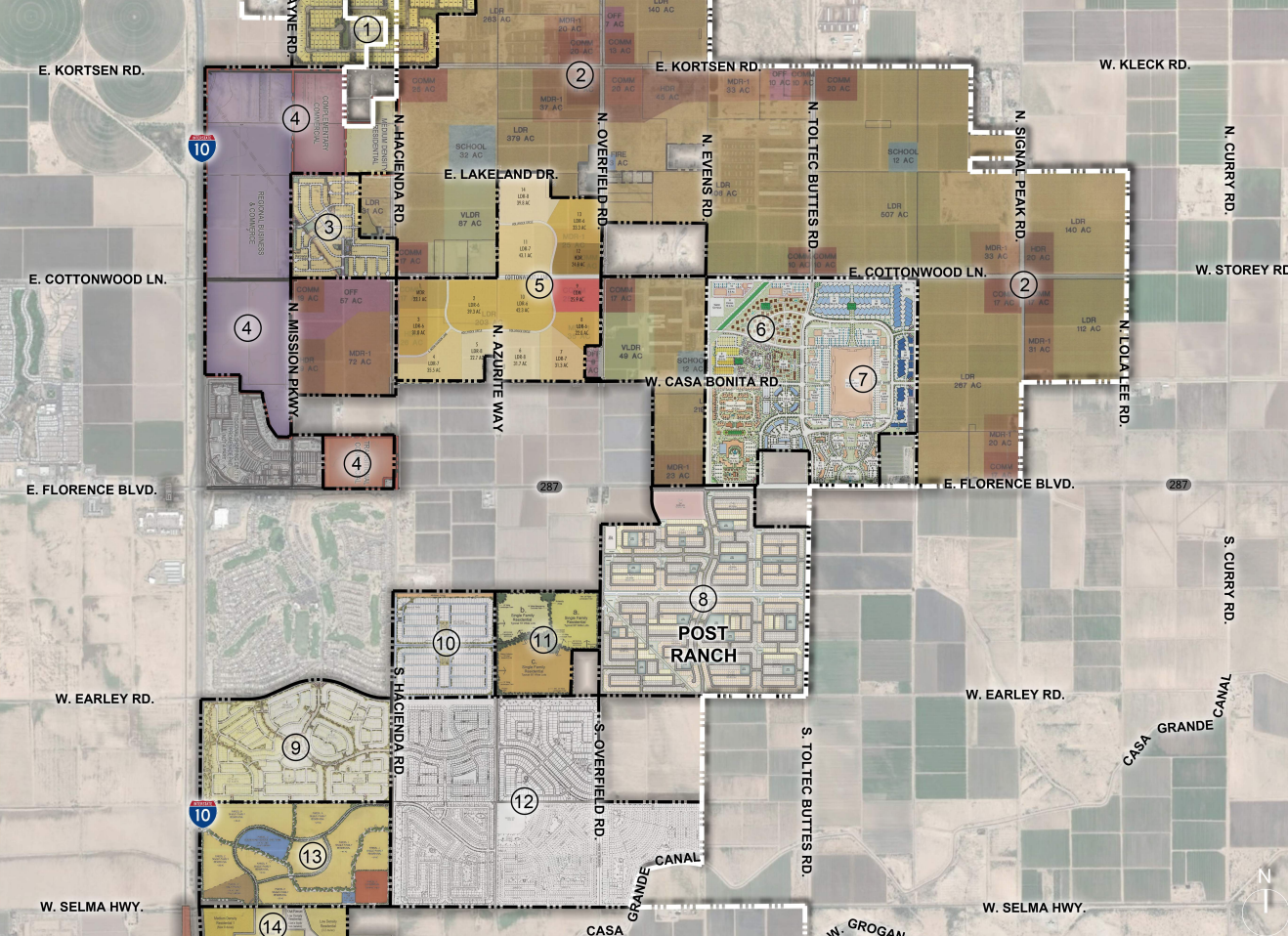 The 567-acre site where the project, called Post Ranch, is situated between Toltec Buttes and Overfield Roads, south of Florence Boulevard.