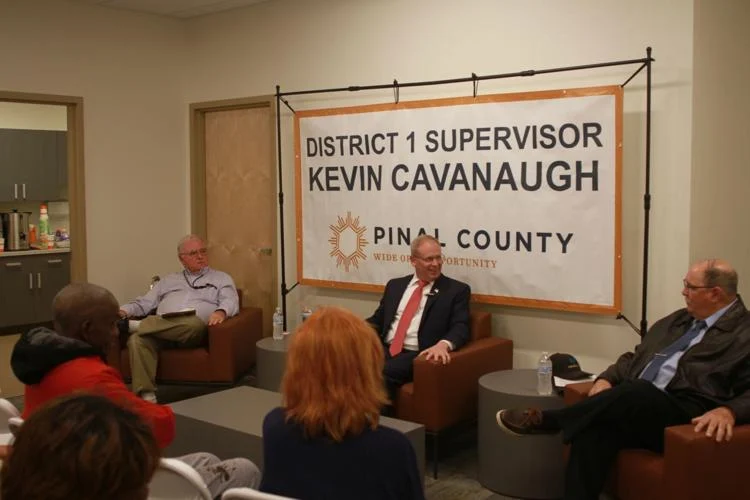 COOLIDGE — Pinal County District 1 Supervisor Kevin Cavanaugh recently sat down with Coolidge Mayor Jon Thompson and newly elected District 16 state Rep. Keith Seaman for a town hall meeting at his South Main Street Office.