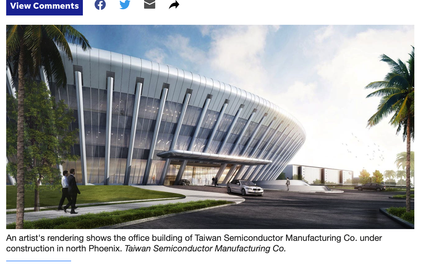 TSMC bought 1,128 acres of land in late 2020 and began construction at its site in north Phoenix near Interstate 17 and Loop 303 in April 2021. The first phase of the facility represents a $12 billion investment, the largest foreign direct investment in Arizona history.