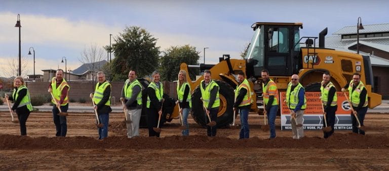 Via Town of Queen Creek By Janet Perez | YourValley Members of the Queen Creek Town Council recently broke ground on three roadway connectors in the downtown core. When the project is completed, Aldecoa Drive