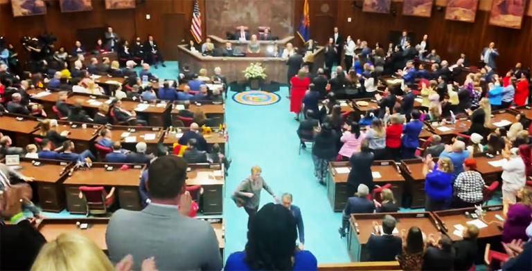 In Arizona Legislature’s first day, divisions with new governor were on display; several Republicans walked out during Hobbs’ State of the State address. || Arizona