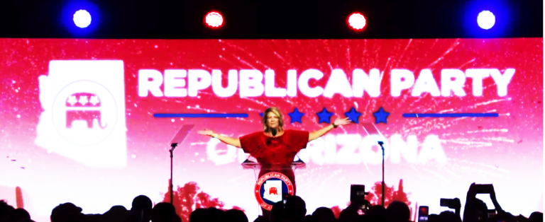 Arizona Republican Party Chairwoman Kelli Ward takes the stage at the AZGOP’s Election Night Watch Party at The Scottsdale Resort at McCormick Ranch on Nov.