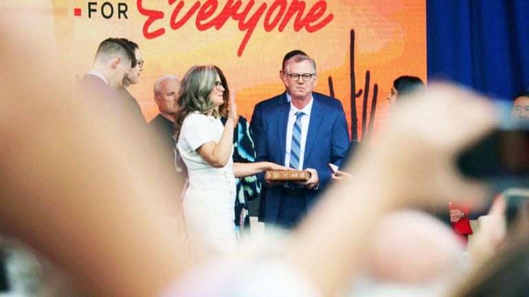 Gov. Hobb’s sweariing in at the state capitol || Pool photo By Howard Fischer || Capitol Media Services The top two Republican lawmakers want Katie