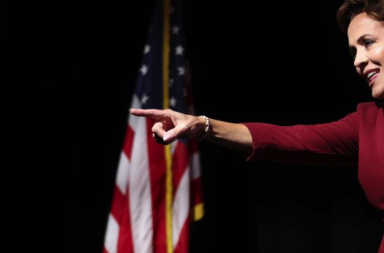Arizona Republican gubernatorial nominee Kari Lake speaks to supporters during her election night event at The Scottsdale Resort at McCormick Ranch on November 08, 2022
