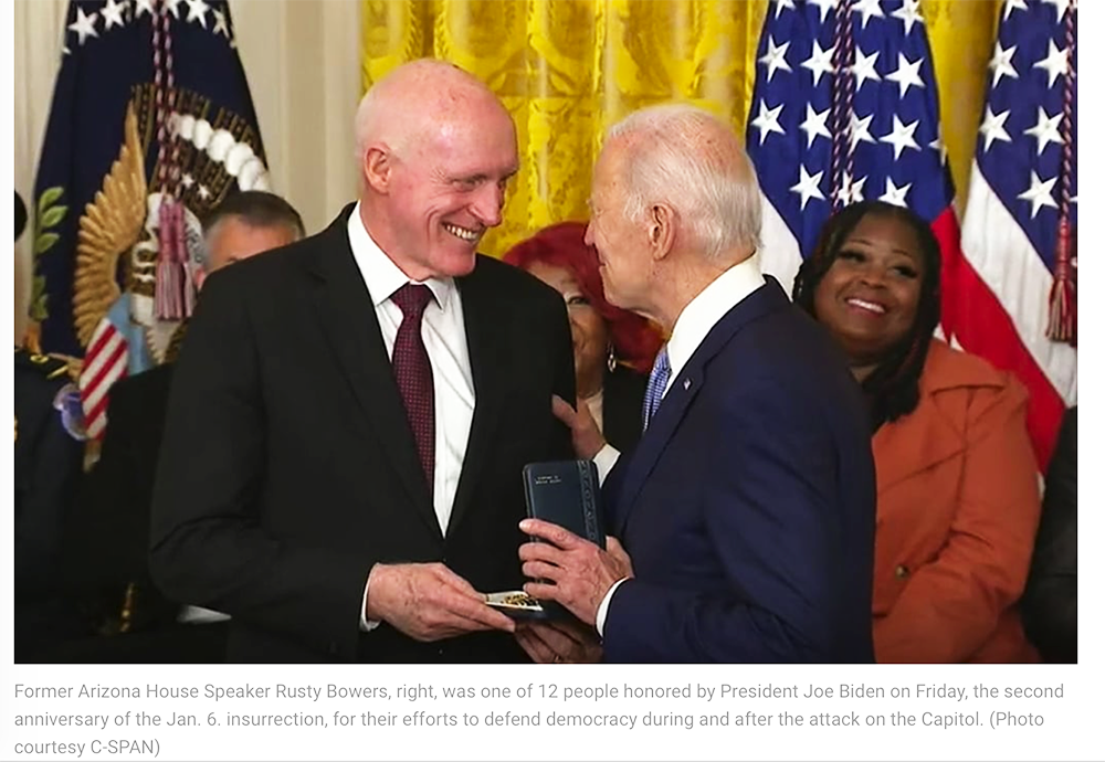 Photo: Bowers honored with medal from the president at Jan. 6 remembrance