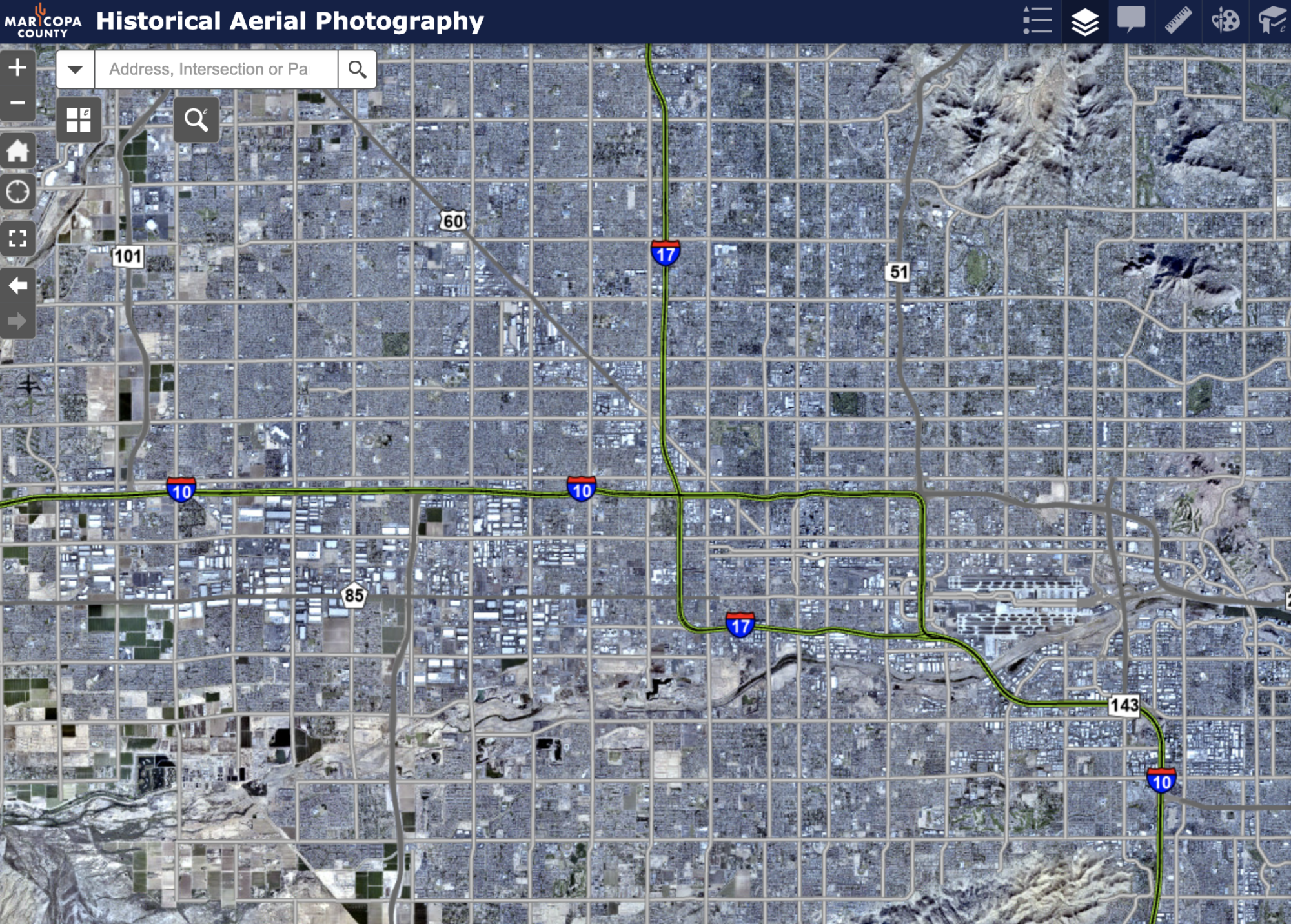 Maricopa County created a webpage that archived aerial photography and satellite images taken since 1930, allowing people to search a specific area and see its’ past lives.