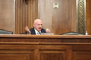 U.S. Sen. Mark Kelly, D-Ariz., questioned Arizona Department of Environmental Quality Director Karen Peters on the problem of pollution in Yuma, which creates very little air pollution on its own but is affected by smog that blows in from other jurisdictions. || Photo by Alexis Waiss/Cronkite News