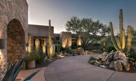 Finally enjoy the grand estate listed for sale at 11408 E Apache Vistas Drive in Scottsdale. This impressive home features over 12,000-square-feet and offers eight bedrooms and 10 full bathrooms, along with two half baths. The home offers a stunning mix of natural beauty and modern architecture and is the perfect place to host and impress both friends and family. Its prominent angular large boulder volcanic rock architecture, biophilic elements and Polynesian design give it a natural feel. The home also features a swim up bar, multi-level lounges and dining areas, along with two distinct guest houses, and a 10-car garage. This home has all the trappings of modern luxury. Lastly, it’s great kitchen tile gives it that Irish accent. Agent Kathleen Lane has listed this masterpiece for $10,500,000 through Russ Lyon Sotheby’s International Realty.