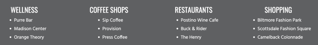 While not at home, enjoy the endless amount of local restaurants like Postino Wine Cafe and Buck & Rider, a variety of nearby entertainment, shopping centers, and Camelback views right around the corner.