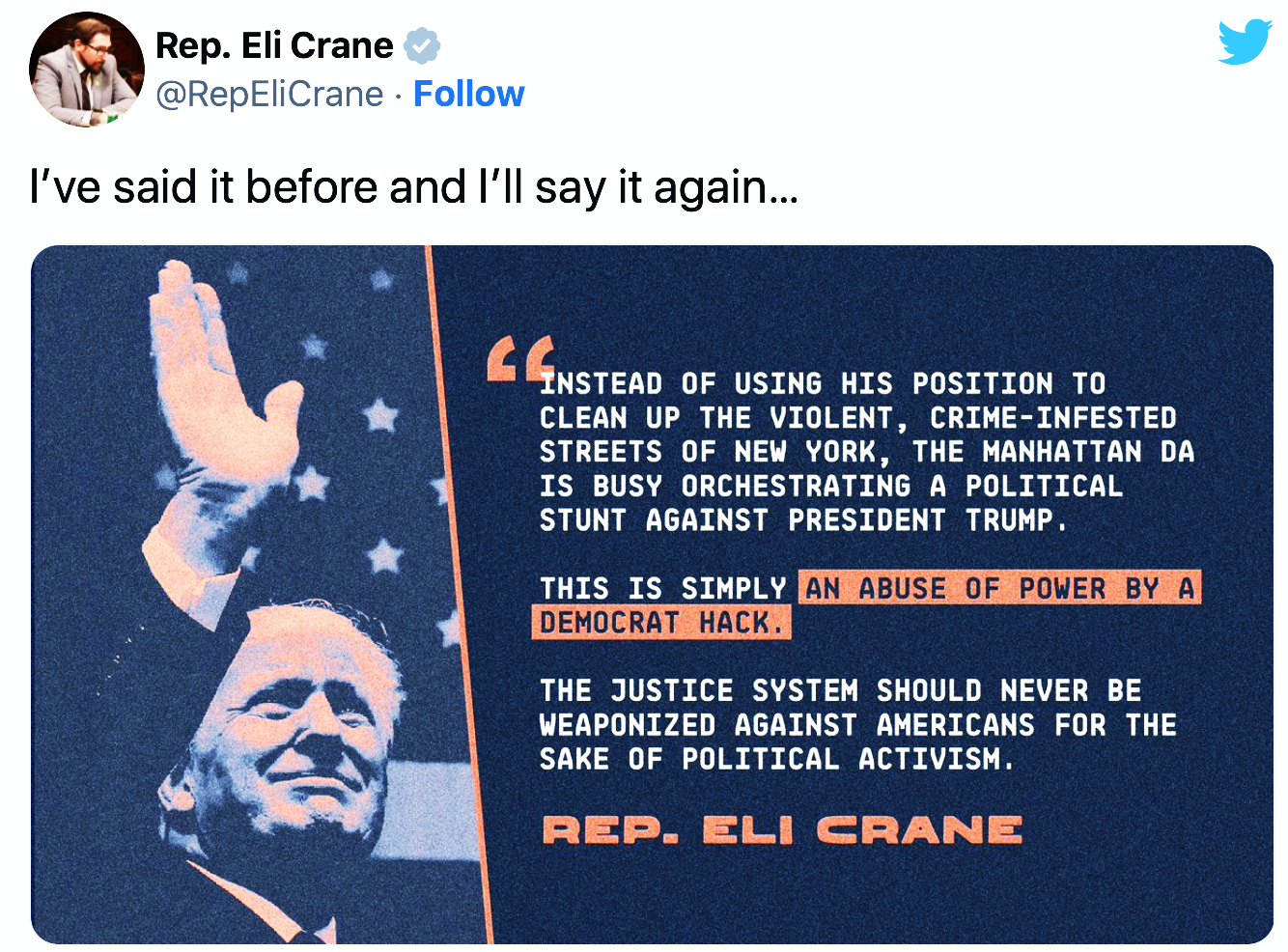 Members of Arizona’s Capitol Hill delegation reacted quickly Thursday to news that a New York grand jury voted to indict former President Donald Trump.