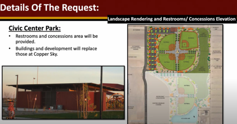 By InMaricopa The city this week presented to the Planning and Zoning Commission initial plans for City Center Park, to consist largely of ball fields that replace those to be taken out at Copper