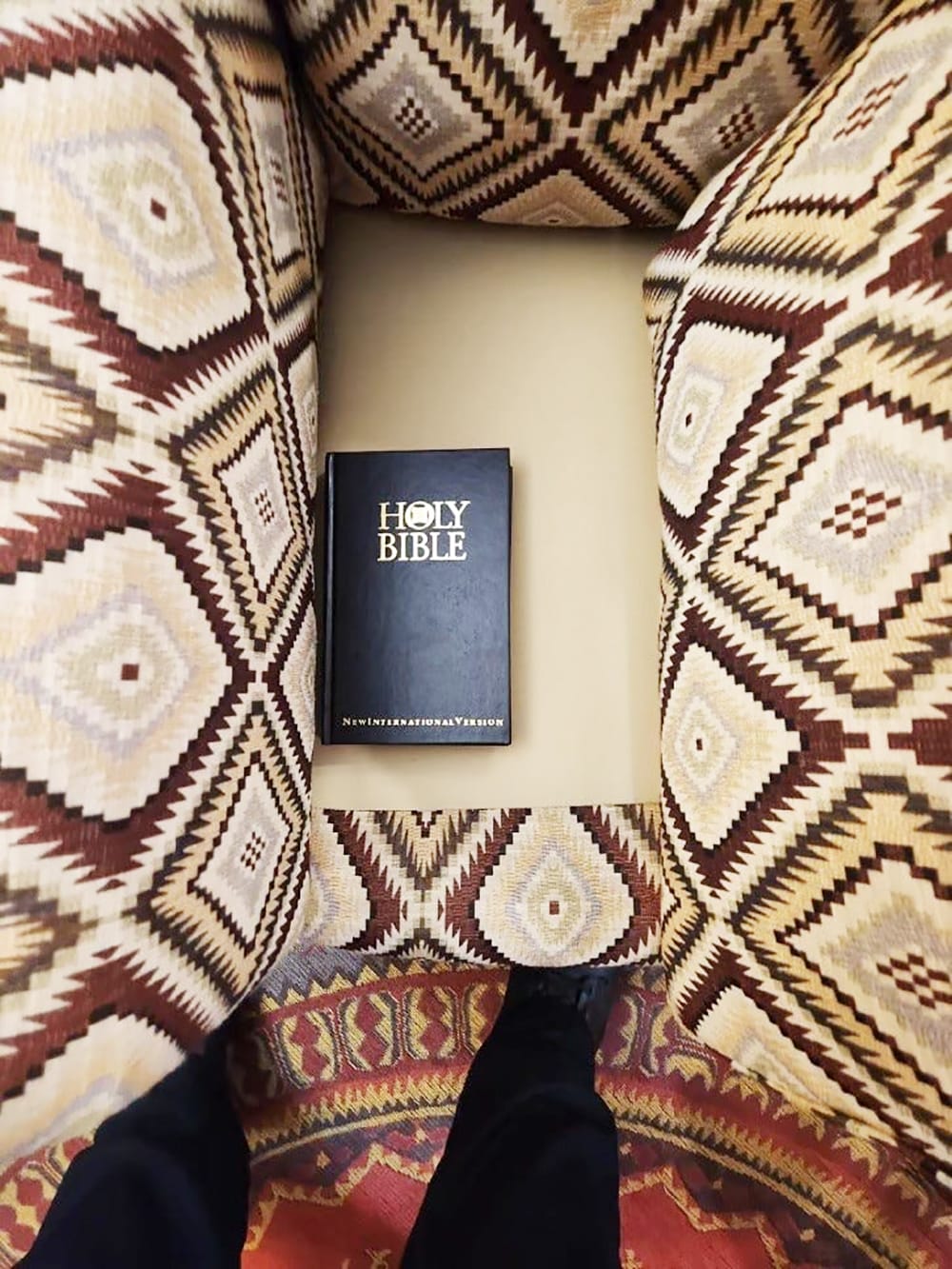 The two Bibles are the same, New International Version translations with a 1984 copyright date. They are on tables on opposite sides of the small lounge, where no one but House members and staff are allowed, except by invitation. The lounge, which has doors that open to the House floor, has cushioned chairs and sofas, a couple of TVs, some artwork and an old shoe-shining machine.
