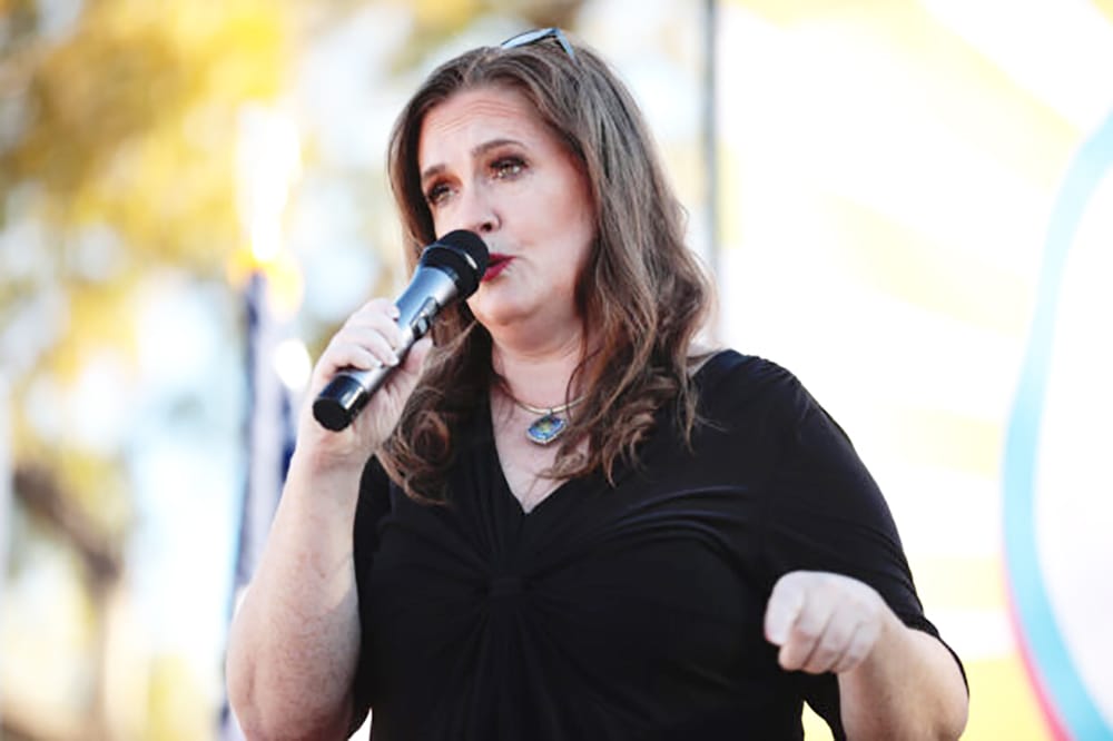 Liz Harris speaks with attendees at a rally hosted by EZAZ at Wesley Bolin Memorial Plaza at the Arizona State Capitol in Phoenix in January 2022. The ethics investigation into Republican Harris of Chandler, who is now a state representative, is still up in the air as she joins a growing list of state lawmakers who have had ethics probes in recent years. || Gage Skidmore/Flickr