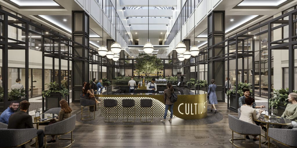 Cultivate, the property’s full-service coffee, cocktail and food service bar focused on atmosphere and providing a top-shelf culinary experience that can be enjoyed in Bond’s atrium seating, outdoor seating or delivered directly to the building’s suites and conference facilities.