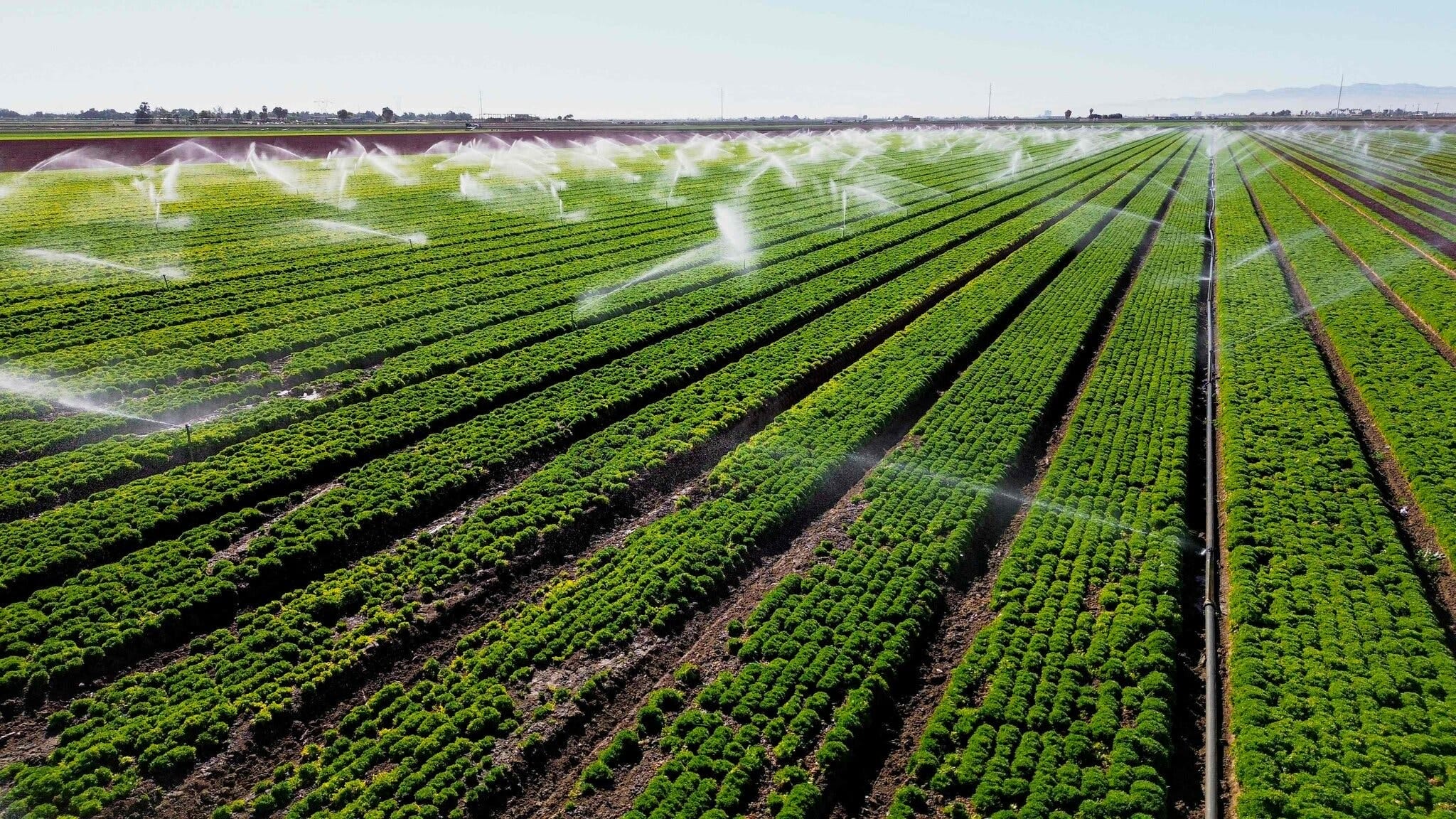 A lettuce field in Holtville, Calif. Of seven states that get their water from the Colorado River, California draws the largest share. ||Credit…Sandy Huffaker/Agence France-Presse — Getty Images