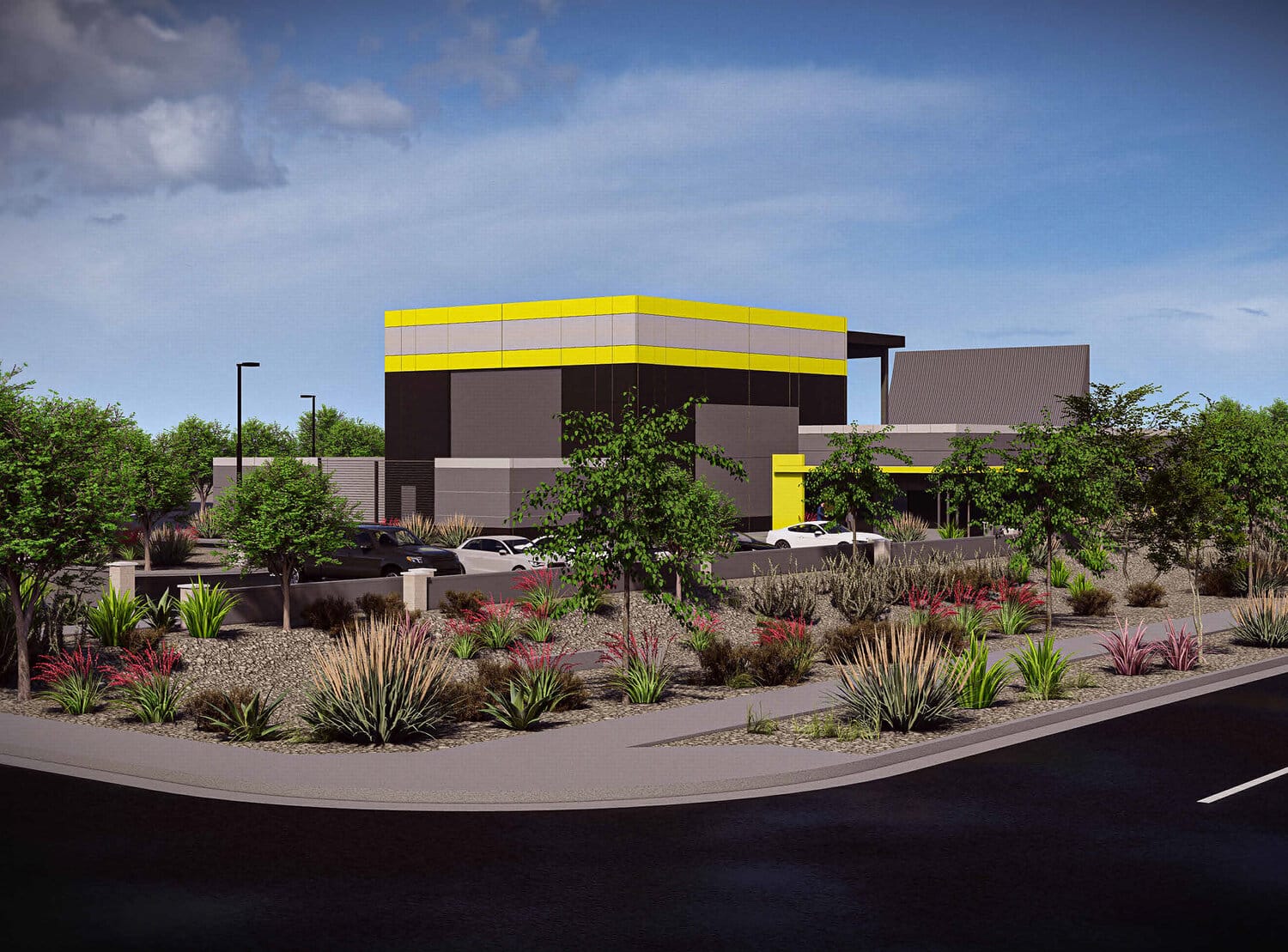 Trees include mulga, sonoran emerald palo verde, mesquite, ocotillo, bank catclaw and emu bush; and shrubs and vines include red bird of paradise, hopseed bush, emu bush, yellow yucca and Texas sage, according to the landscaping plan.
