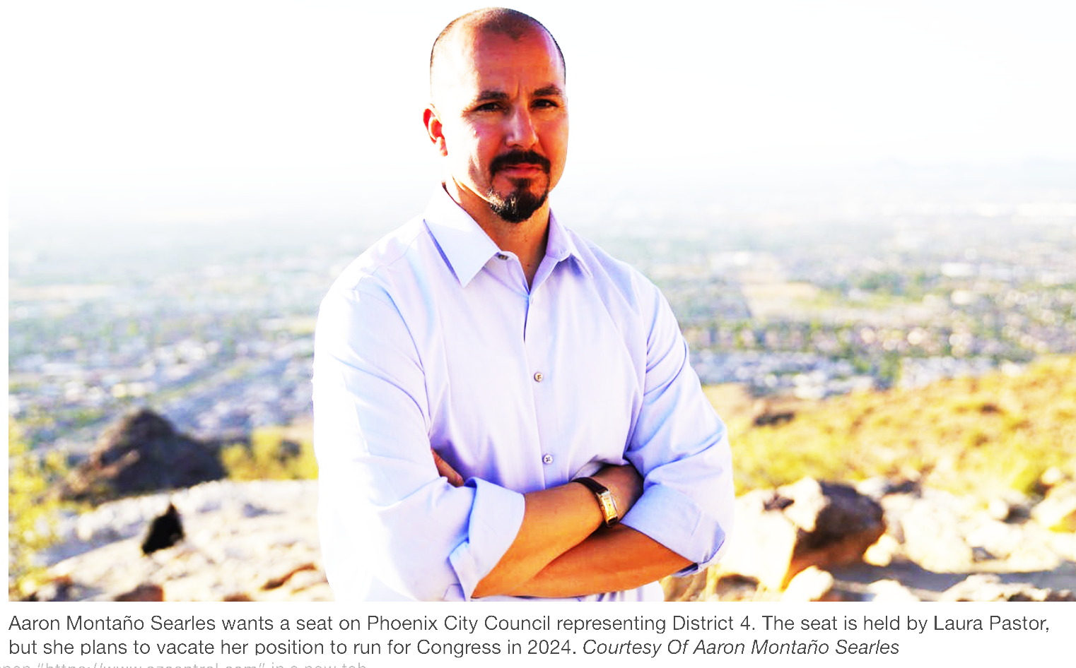 Aaron Montaño Searles wants a seat on Phoenix City Council representing District 4. The seat is held by Laura Pastor, but she plans to vacate her position to run for Congress in 2024.