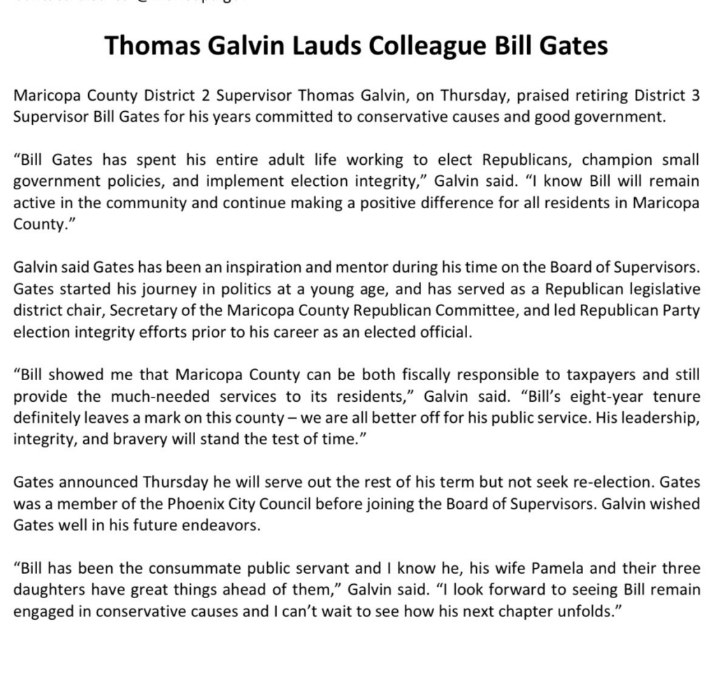 “At Maricopa County, I kept government lean, taxes low, supported our most vulnerable residents, and told the truth about our elections in the face of false information,” his statement said. “My will to fight for the truth remains unhindered, and I look forward to Maricopa County running the 2024 election.”