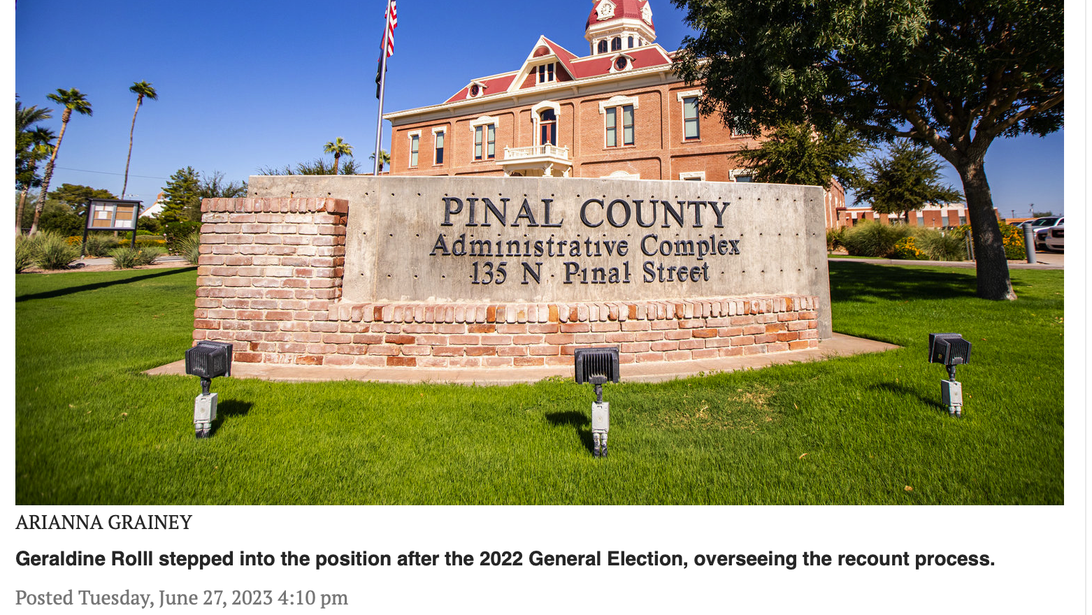 Pinal County Elections Director Geraldine Roll resigned Tuesday morning after less than a year in her position, citing a toxic work environment and accusing county supervisors of attempting to politicize elections administration.