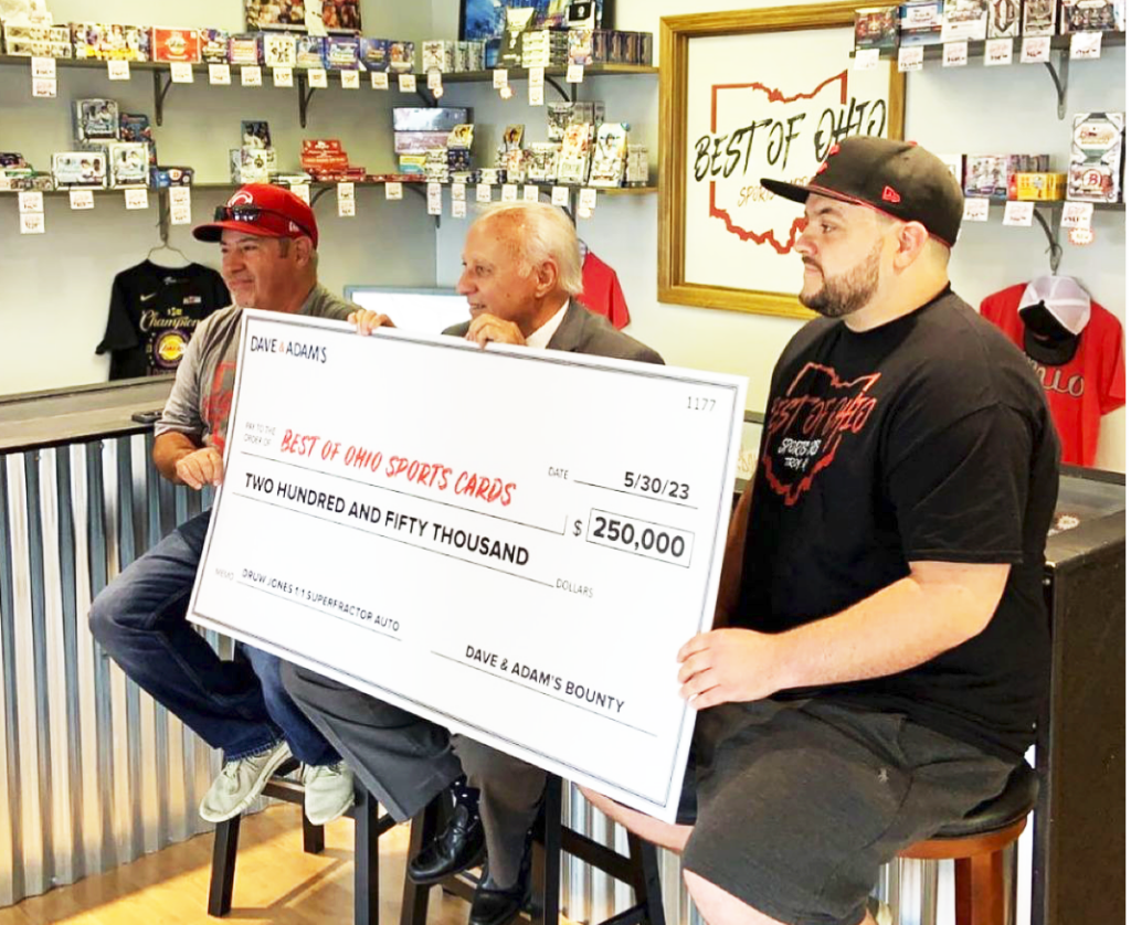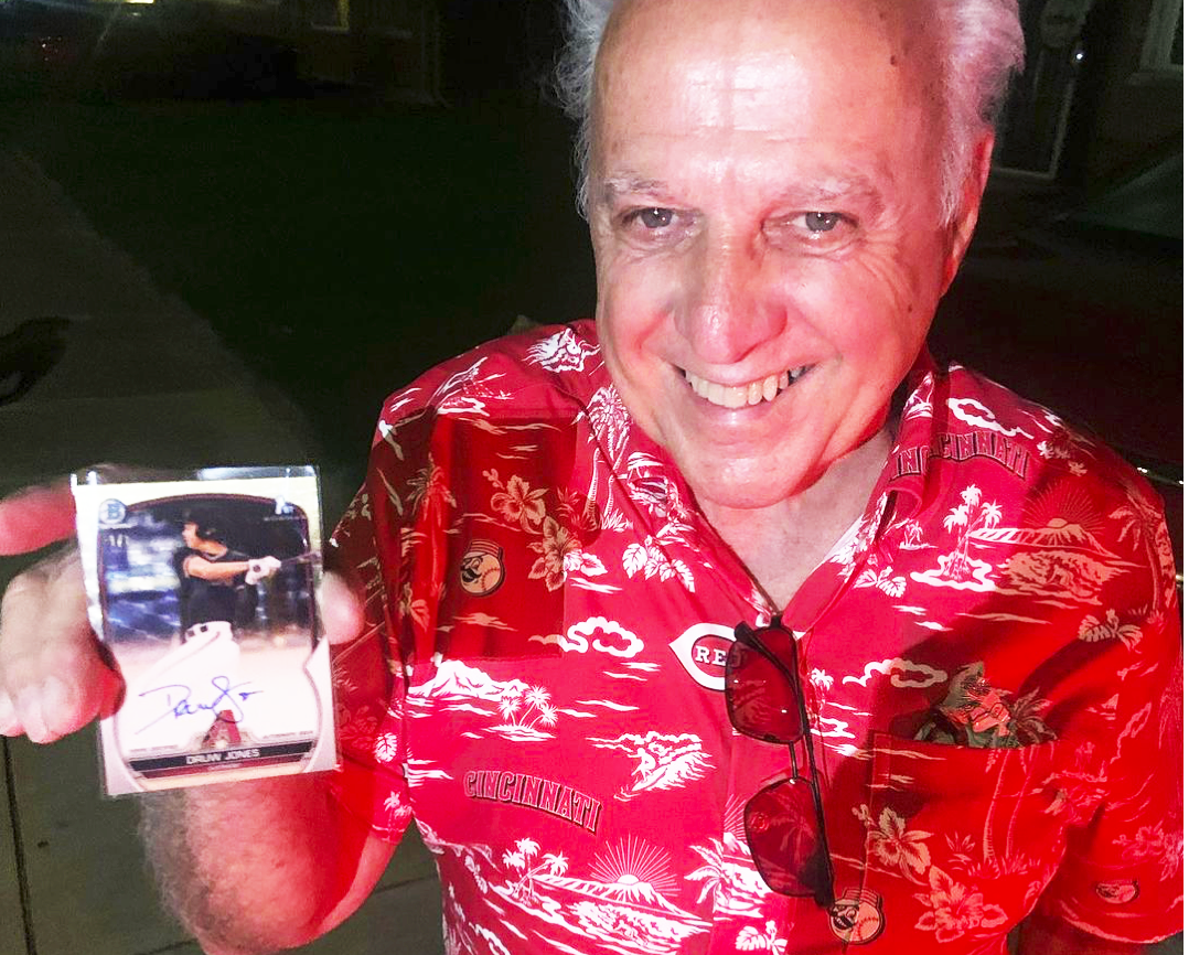 “My dad, grandfather, brother and I have a family tradition to take some baseball card packages to rip open on our way to the game,” said Mitch Siler, co-owner of the Best of Ohio Sports Cards shop in Troy. “Each of us bought four packages of the Bowman Chrome cards in hopes of finding the Jones card, and we purchased an additional dozen for our store. My grandfather had his pack sitting on the counter, and we grabbed it when we picked him up for the game.