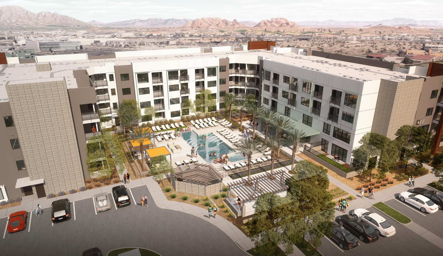 Located at the Southwest corner of 48th Street and Washington Street, in a designated Opportunity Zone, the community will include a mix of studios, one-, two-, and three-bedroom units ranging in size from 415 to 1,392 square feet. The project will feature extensive amenities including two clubhouses and resort-style pools, a fitness center, green space, and dog park. Units will include first-class finishes including glass showers, walk-in closets, premium kitchens with stainless steel appliances, and private balconies.