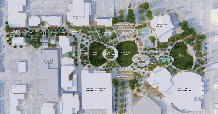 “We are absolutely thrilled to officially relaunch Scottsdale Civic Center, the original epicenter of Scottsdale’s arts culture, hospitality, community spirit and unique Western reputation,” Scottsdale Mayor David Ortega said in a press release.