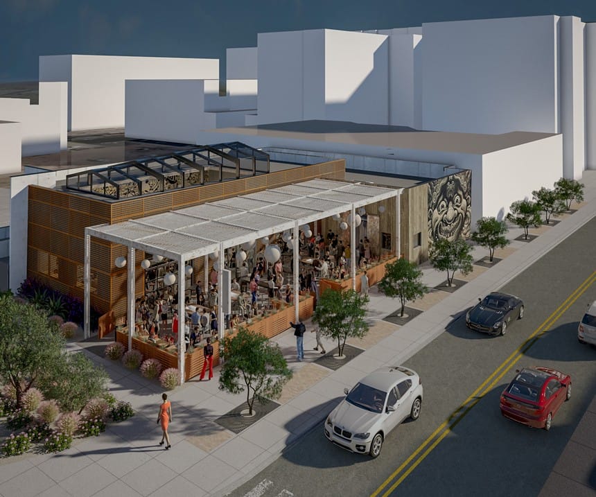 A rendering of the proposed bar and restaurant on the northeast corner of Second and Roosevelt streets. – Four Corners