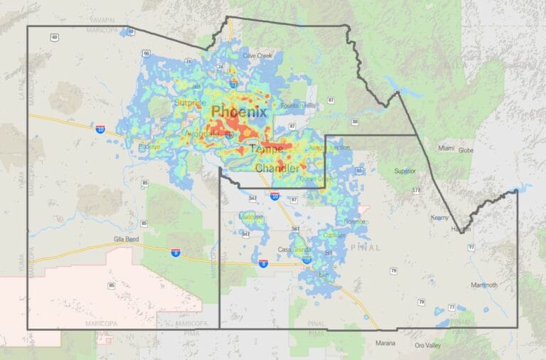 This heat map shows the population projections for Pinal and Maricopa counties by 2060. [Maricopa Association of Governments] By Monica D. Spencer | InMaricopa If
