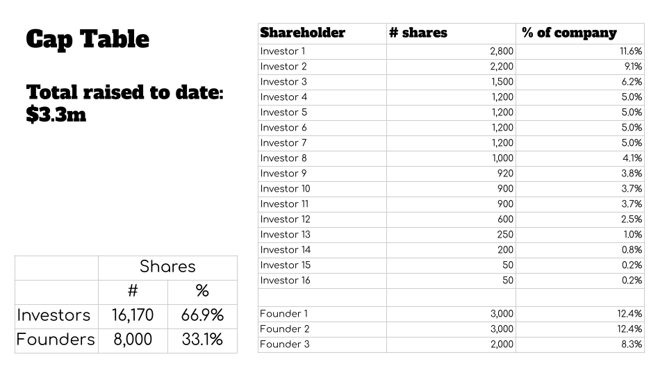 The CEO of a Norwegian hardware startup shared a pitch deck with me that had an unusual slide: It included the company’s capitalization table — the breakdown of who owns what part of the company. Typically, cap tables are shared in the diligence phase of investing.