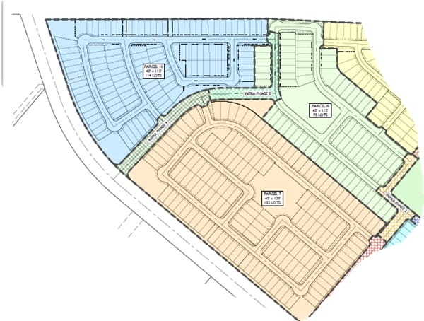 Meritage Homes is the first homebuilder to seize this opportunity. The initial 266 lots at Mandarina, part of an option for 560 lots, were acquired by Meritage for a total of $8,638,180 ($32,474 per lot). These platted-only lots were purchased from Mandarina Holdings, an affiliate of Bela Flor Communities, in Mesa, with the seller finishing the lots for the homebuilder, as shown in Parcels 7 and 10 of this site map.