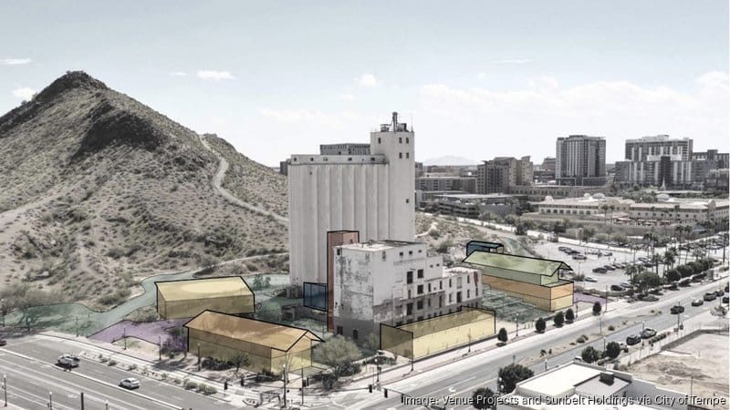 Tempe entered into a development agreement in 2023 with Venue Projects and Sunbelt Holdings to redevelop the Hayden Flour Mill site at 119 S. Mill Ave., as explained by a city report.