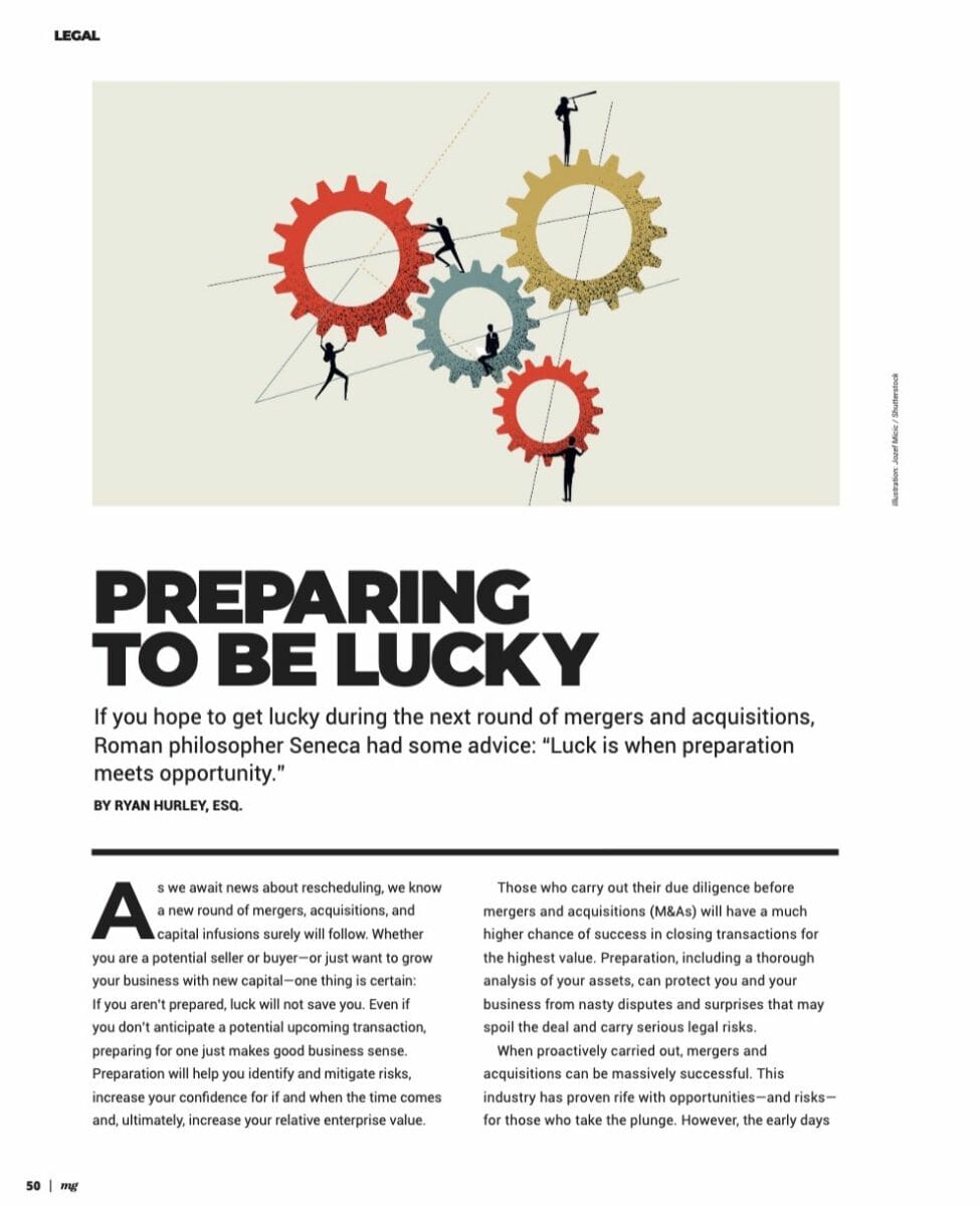 ‘Preparing to Be Lucky’ Rose Law Group Chair of Cannabis Dept. Ryan Hurley pens article on mergers for MG Magazine