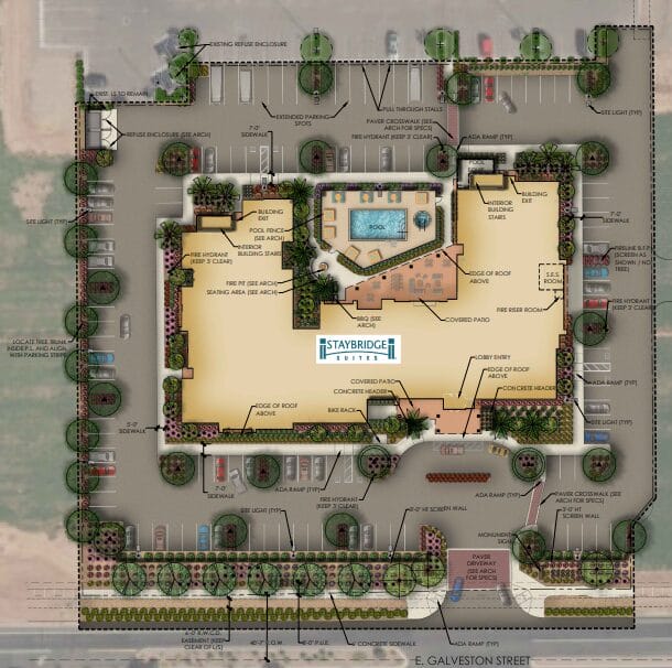 By CJ Jorgensen | AZBEX IPlan Consulting Corp, on behalf of Landmark Land Investments LLC, submitted a proposal for a new hotel in Gilbert. At the NWC of Galveston Street and Power Road, the 96.1KSF,