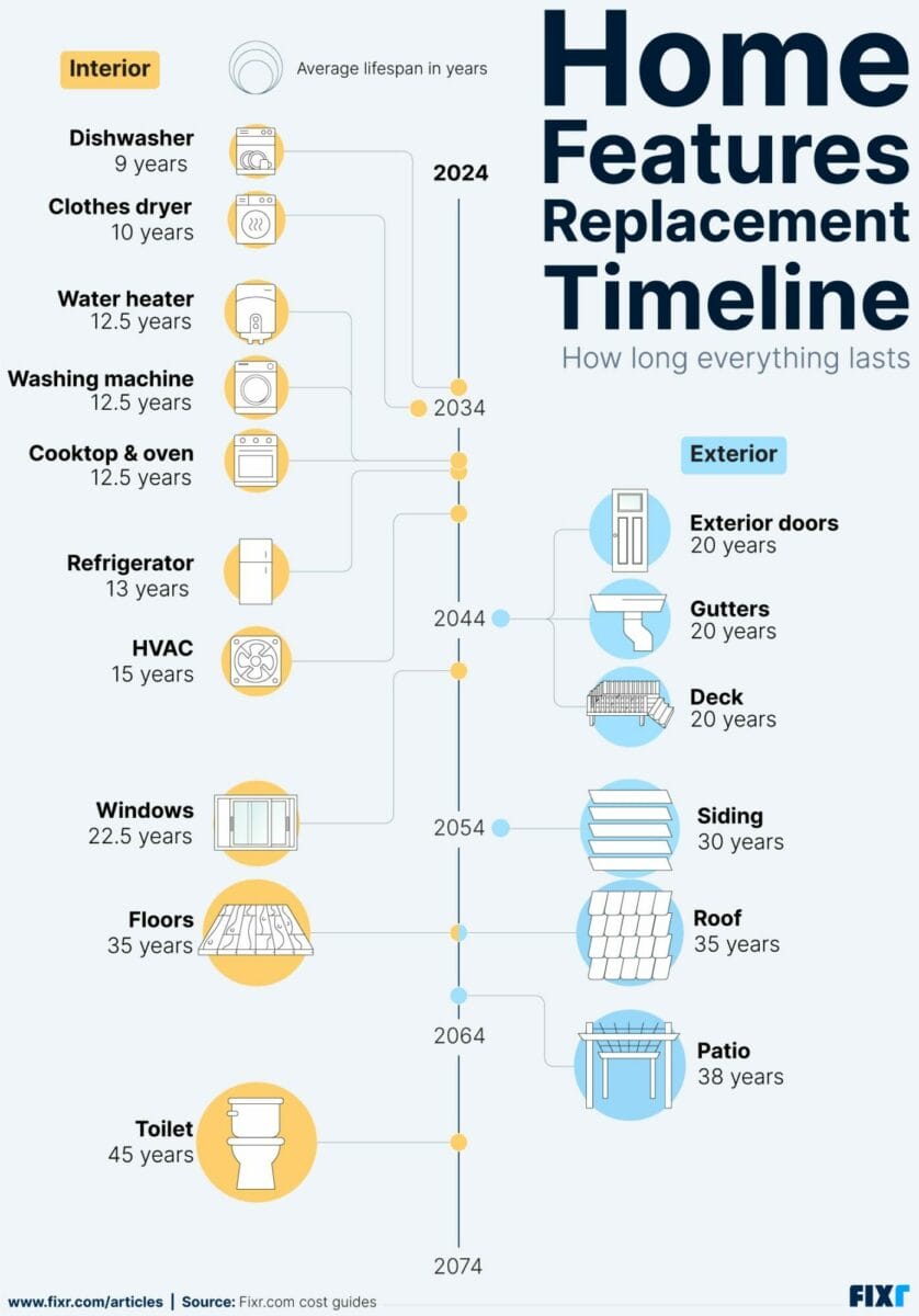 But homeownership requires replacing broken features yourself. It pays to count the cost and life expectancy of everything when buying a home. That way, you can be sure to save back enough money in the bank to cover the unexpected. After all, nothing lasts forever.